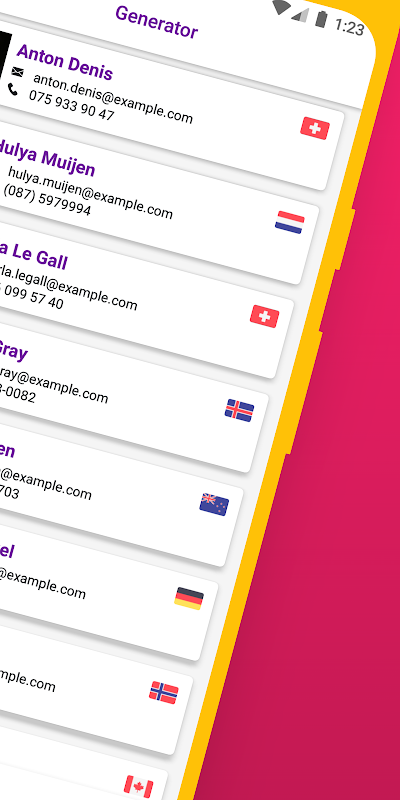 该应用程序生成来自 17 个国家/地区的用户数据,并允许您将数据导入 CSV 文件。
