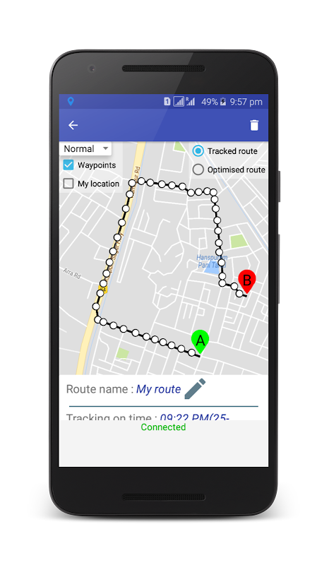 * Keeps history of tracked locations by datewise,monthwise and yearwise for unlimited time(Till user deletes it).