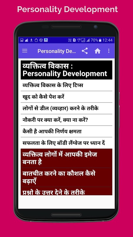 Personality development is so important in every ones career. A good personality is the key for success And our application gives all handy tips to develop a better personality in you.