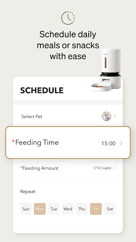 - 简化喂养计划:轻松设置日常喂养,以保持宠物饮食一致。您甚至可以自定义语音消息,让用餐时间变得特别。