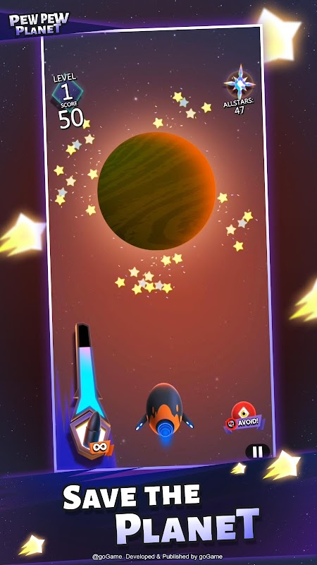 用致命的准确性射击环绕着星球的小兵! 小心别击中星球和炸弹! 游戏阶级越高,必须铲除的小兵就越多! 取得高分以获得更多众星!