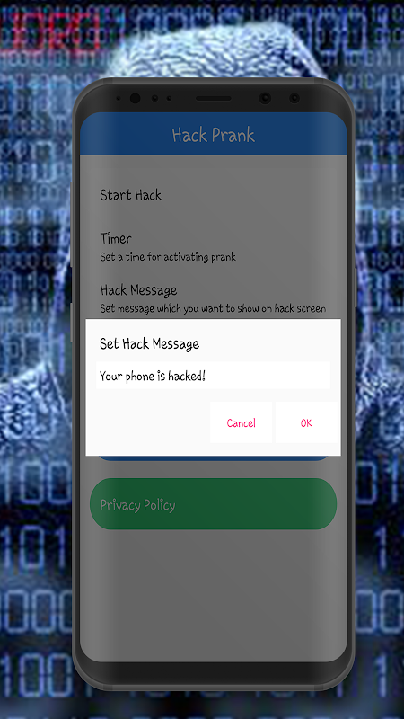 - Set whatever message you want to see on hacking screen like "Your phone is hacker...HAHAHAHA"