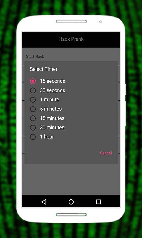 - 将时间设置为15秒至1小时,然后在手机上显示黑客屏幕