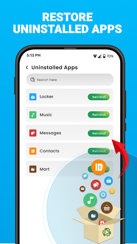 • 只需几个简单的步骤即可恢复已卸载的应用。