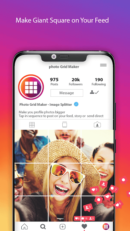 自豪地成为第一个遇到这个qiant方形应用程序的人,并用惊人的剪切照片装饰你的饲料,每个人都会嫉妒!从较小的单个图像创建一个大的照片网格蒙太奇,每个图像代表原始快照的裁剪部分!