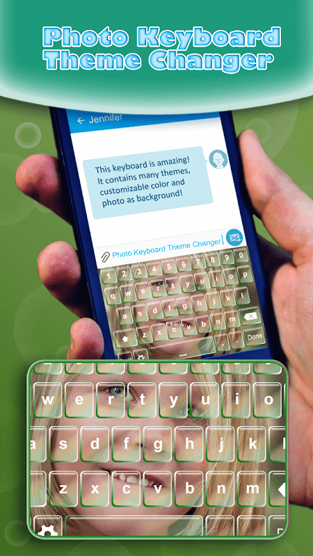 ✳ Get ready for the newest keyboard app for AndroidTM! Lose yourself in a multitude of fancy ‘‘keyboard themes’’, especially made to your taste. Make the process of texting a beautiful experience by picking the right keyboard style for you. Personalize your keyboard cover by choosing your own pictures or selfies as a background. Grab everyone's attention wherever you go thanks to our ‘‘photo keyboard’’ free of charge. Upgrade your texts with a bunch of cute emojis, stunning letter fonts and cool stickers. Enjoy typing text messages to your dear ones on a customized keyboard skin! With a help of ♥Photo Keyboard Theme Changer♥ you can dress up your device with numerous elegant themes. No time to loose, check out this brand new app and start texting with a style!