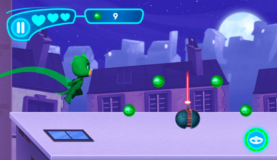 Help your favorite PJ heroes, Defeat villains with Catboy, Owlette and Gekko! Choose your favourite hero and start your adventure through the PJ Super Mask Starlight Sprint. collect coins with which you can unlock new heroes and abilities! Catch the villains and collect the items they have been stealing, BUT make sure to look out for any traps they might have set..!