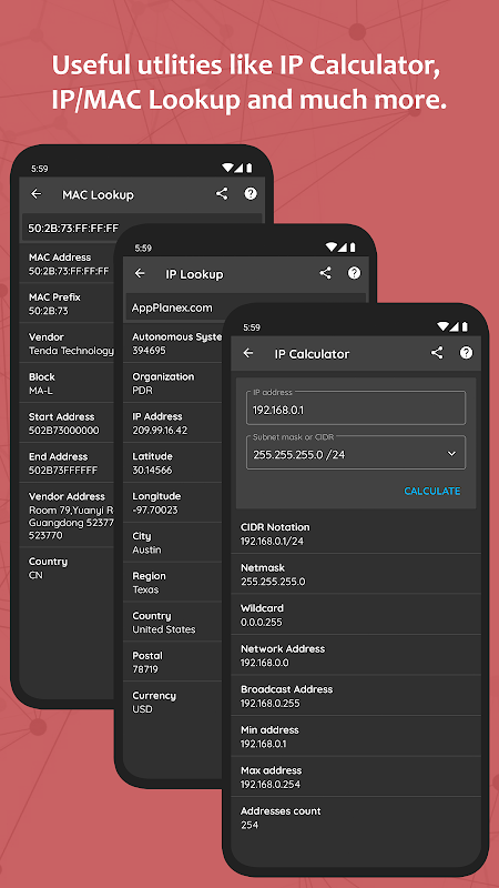 隆重推出一套功能强大的网络工具和实用程序,旨在帮助您轻松分析、测试和诊断网络相关问题。这款应用提供全面的网络工具,是 IT 专业人员、网络管理员和技术专家必备的网络管理工具。无论您是需要排除连接故障、监控网络性能,还是执行高级网络诊断,这款应用都能提供合适的工具。使用这款一体化网络实用工具包,随时随地掌控您的网络。