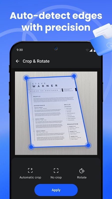 使用相机在几秒钟内即可扫描文档。自动边缘检测和智能裁剪功能确保每次都能获得清晰、专业的扫描效果。