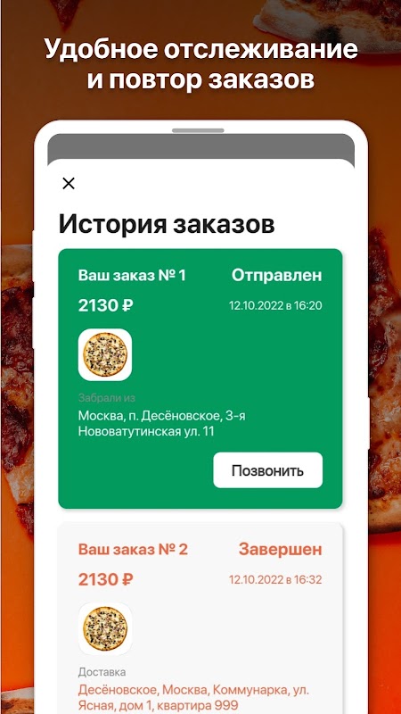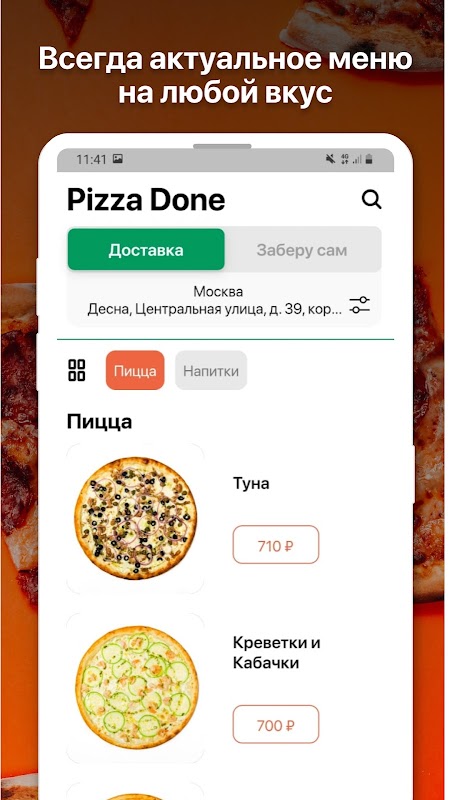 通过我们的移动应用订购披萨!如果您住在莫斯科南部,您可能已经认识我们。披萨很好吃,送货又快又免费。如果你还不知道,试试吧,你会喜欢的!
