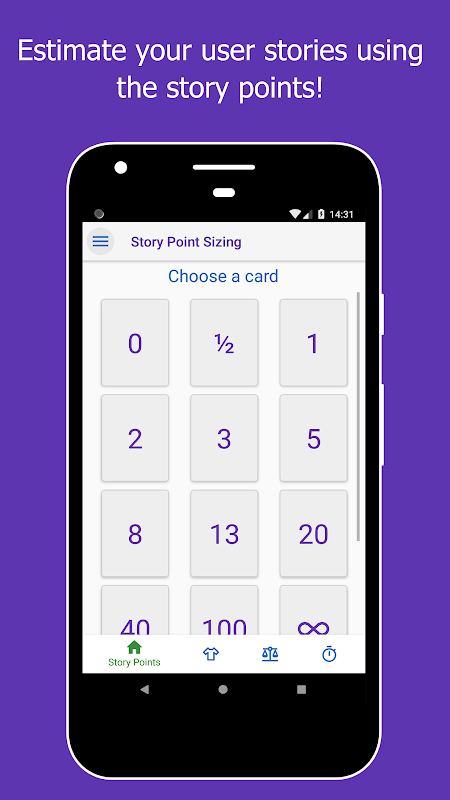 This is a planning poker app that supports three main types of estimation Original Story Points, T-Shirt Sizing and the Fibonacci scale.