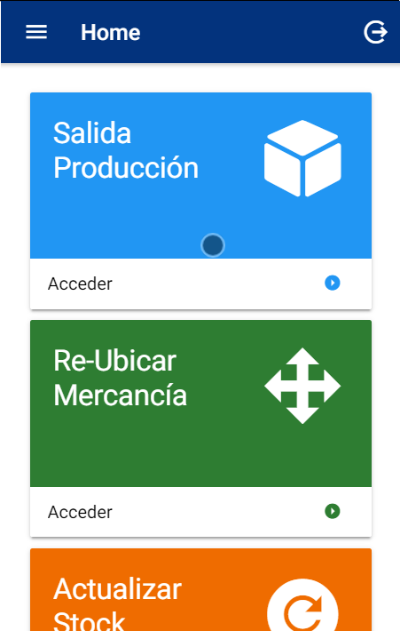 Aplicación para gestionar el almacén, con diferentes movimientos de salida de producción, reubicación y actualización de stock.