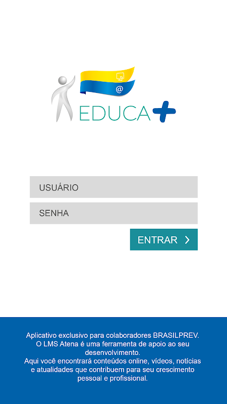 A aplicação de treinamentos pelo aplicativo Portal Educa + Brasilprev é exclusiva para colaboradores da Brasilprev Seguros e Previdência S/A. São conteúdos disponibilizados com a finalidade de contribuir no desenvolvimento dos seus colaboradores, promovendo um processo de aprendizagem contínuo, alinhado aos objetivos estratégicos da Companhia.