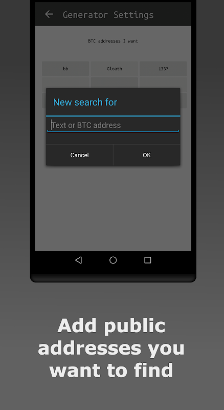 添加您要查找的公钥地址。生成器可以找到私钥,私钥和门户地址。将您的密码,标签,加密的文本或消息添加到门户标题中,并确保它们的安全。