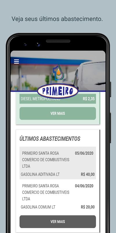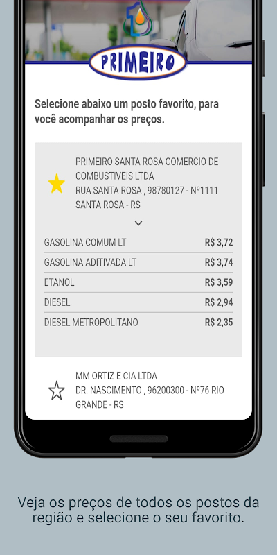 Posto Primeiro应用程序在注册后为客户提供访问权限,以便他们可以监控所供应的燃料,该应用程序还可以显示网络中所有站点的更新燃油价格,并为客户提供选择的选项您选择的电台,以便其价格可以直接显示在应用程序的主屏幕上,以便于查看。