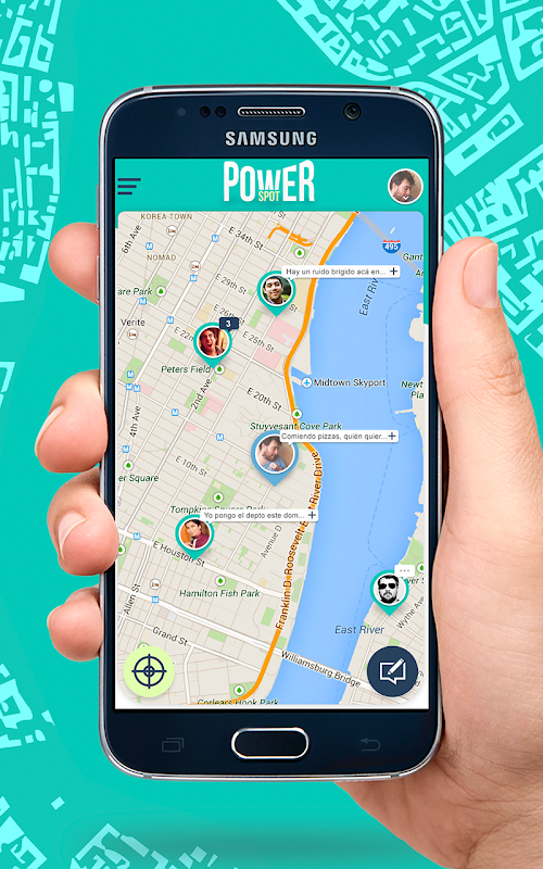 PowerSpot es un servicio basado en localización aplicada a las redes sociales. La geolocalización permite localizar un móvil en una ubicación geográfico otorgando al usuario poder compartir un mensaje en tiempo limitado.