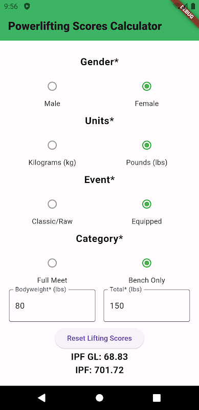 通过体重和举重轻松计算举重得分。
