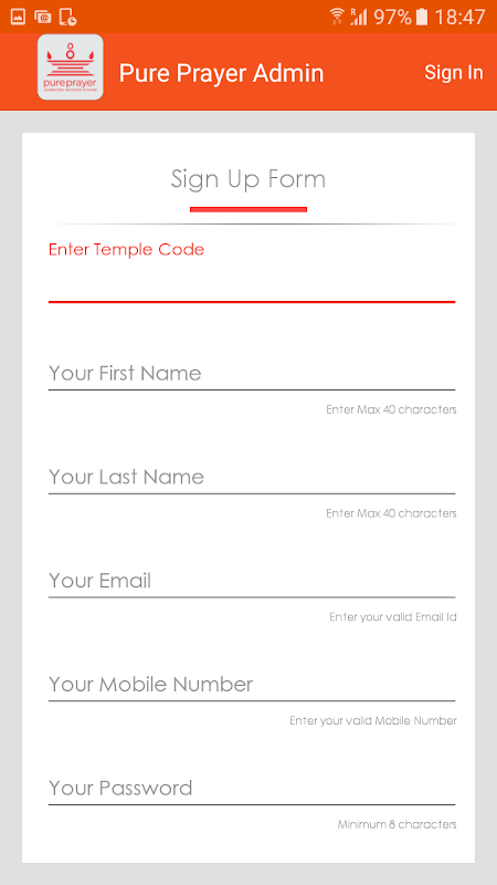 Administrators has to complete the registration process and access will be verified & authorised by Pure Prayer backend team.