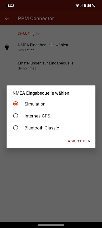 该应用程序通过蓝牙连接外部 GNSS 接收器,并将 GPS 位置作为“模拟位置提供程序”转发到系统中的任何导航应用程序。