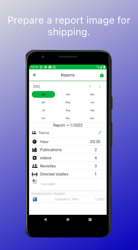 Helps sending the report, either by WhatsApp, e-mail, etc.