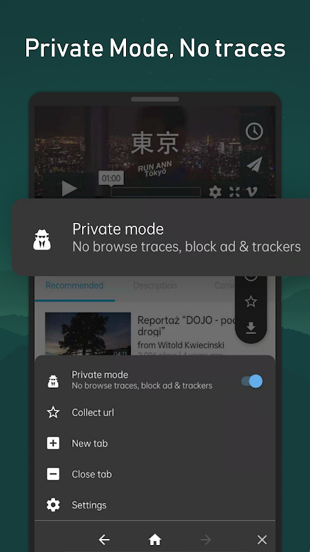 浏览没有跟踪器的私人网站和视频。保存或标记视频。