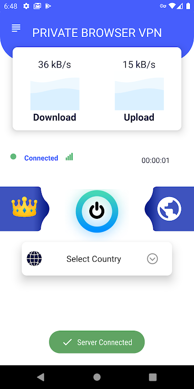 Try this free vpn Private Browser VPN Pro -Private Proxy VPN Browser for encrypted and Private access to the internet. Private Browser VPN Pro -Private Proxy VPN Browser is a completely FREE Vpn with a built in proxy browser app that provides FREE and unlimited connection to fast vpn proxy servers from around the world. This vpn has express access to a Private Browser service so you can surf the web while being encrypted and anonymous. There is no need to sign up or do any configuration, just simply click one button, and you can access the Internet securely and anonymously. When it comes to Internet privacy and security, Unlimited Proxy VPN - Private Proxy VPN Browser is an essential tool. With Unlimited Proxy VPN - With A Proxy Private Browser you will be able to connect to our super fast and unlimited vpn proxy servers, Unlimited Proxy VPN - Private Proxy VPN Browser encrypts your connection and blocks tracking from third parties and hackers and hides your up address and online activities, making it more secure than a typical proxy browser. We have built global proxy VPN express servers to instantly, anonymously, and constantly keep you connected to a vpn network while browsing. The Vpn servers includes America, Europe and Asia, and soon to be available for more countries. Most servers are free to use, you can click the flag and change server as any times as you want. Unlimited Proxy VPN - Private Proxy VPN Browser comes with a built-in private proxy vpn servers and Allows you to buy premium ad free servers. Protect your network traffic under WiFi hotspot Browse anonymously and securely without being tracked, and Encrypt your data.