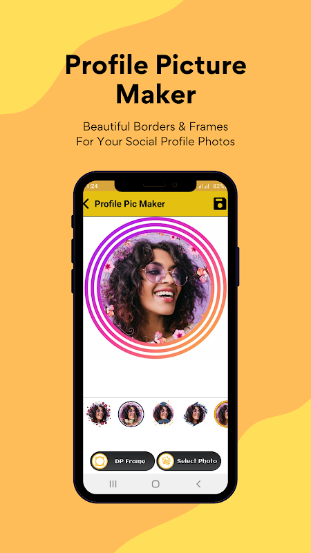 使用 Profile Pic Maker,您可以在自拍照或手机中的任何其他图片中预览和添加令人惊叹的相框。