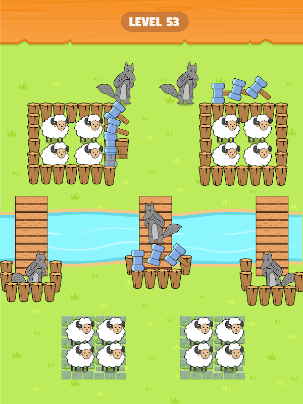 守护绵羊是一款益智游戏。你需要扮演一位牧羊人,拯救你的羊群,抵御众多狼群的攻击,并保护小羊羔。点击屏幕,在草地上预设木桩,用木桩将羊和狼隔开。每关都有一定数量的木桩。预设完成后,点击建造按钮,木桩就会从地面升起。保护羊群,如果狼不吃掉羊,你就赢了。