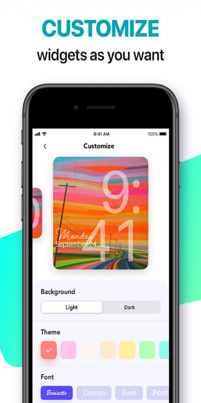 Choose from a rich variety of shapes, fonts, and backgrounds to make your own original widget that’ll fit the look of your iPhone, or just pick one of 15 ready-made options. And for a truly unique widget, use your favorite photo!