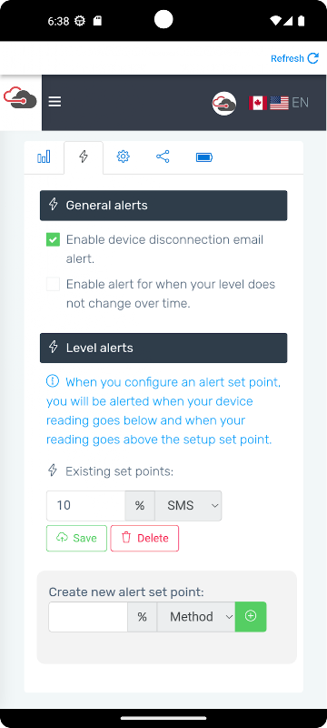 访问您的 PTDevices 帐户,监控您的水箱液位 (PTLevel)、设置警报、查看液位历史记录、设置新设备等等,一切尽在您的掌控之中!
