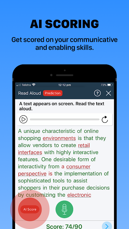 利用 PTE Success 应用程序精确的 AI 驱动评分系统提升您的练习水平。体验与 Pearson PTE 官方分数指南一致的可靠模拟考试结果。深入了解语言技能:内容、发音、口语流利度、语法、拼写、词汇和书面话语。
