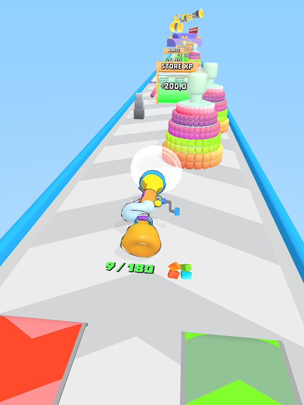 我们在跑道上为您设置了一个升级区域,您可以收集立方体,并通过收集的立方体获得各种改进。您可以增加真空的范围、速度和功率。
