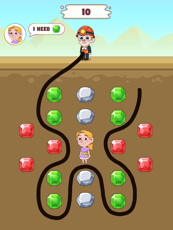 《拉金矿工》是一款小型益智游戏。玩家扮演一名金矿工,需要用绳子将公主从地上拉上来。公主贪图地下的宝藏,光拉着公主会不开心。你需要画一条线圈住公主和她需要的宝藏,才能赢得游戏。