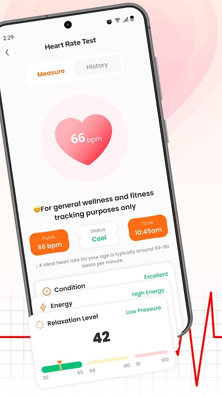 只需将手指放在智能手机的摄像头上即可获取心率。每次扫描后,您将收到一份心率摘要报告,该报告以图表形式显示,帮助您更好地了解心率趋势。