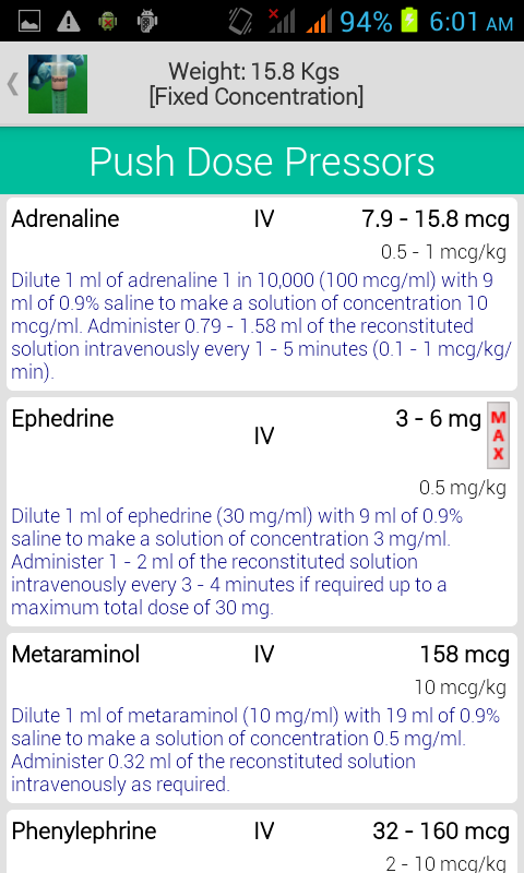 本申请提供的健康护理专业人员使用,而不需要输注滴定正性肌力药和血管收缩药以受控的方式的方法。 “推剂量升压药'允许危重成人和儿童获得拯救生命的血管活性药物更快地访问。旨在提供稳定而标准输液准备时或血液动力学异常,预计是短暂的,例如麻醉诱导。在几秒钟的事这个应用程序提供了剂量和给药说明如下: