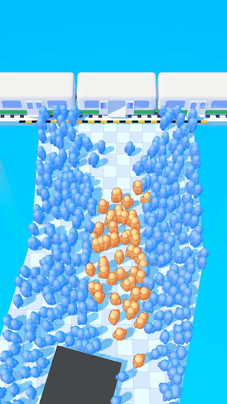 Make your way through the crowd to catch your train! Draw a path to separate the crowd and let as much people as you can into the train.