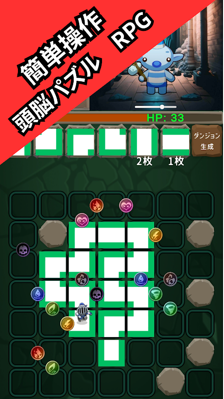 欢迎来到“拼图地牢”!在免费的大脑训练益智 RPG 游戏中引入新的感觉!冒险进入地牢,放置路径图块,并击败怪物。