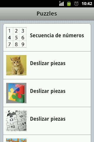 Colección de juegos tipo puzzle. Se incluye un puzzle de tipo secuencia de números, y varios de deslizar las piezas para descubrir la imagen oculta.