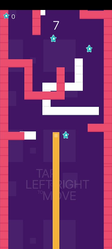 在这个游戏中,通过点击屏幕左右两侧来旋转像素线来做出决定,以避免撞到障碍物。在此过程中,您需要收集尽可能多的五角星。这可以让你兑换更多的像素皮肤。