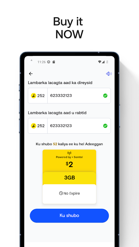 轻松从 Hormuud、Somtel、Somnet 和 Amtel 获取 sim 数据。