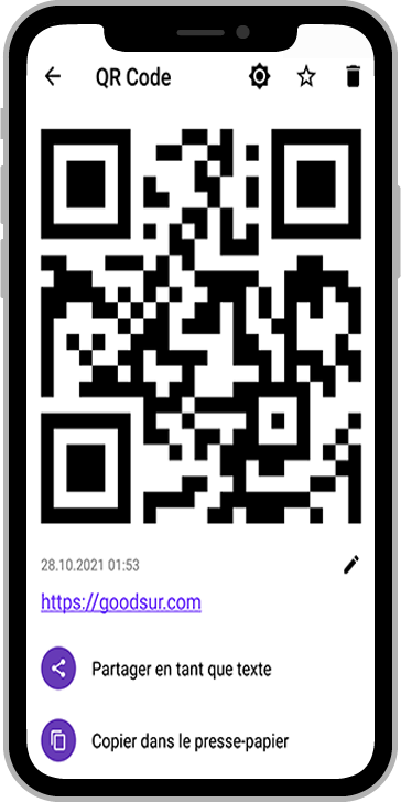 Share various data like website links with the built-in QR code generator by showing them on your screen as a QR code and scanning them with another device.