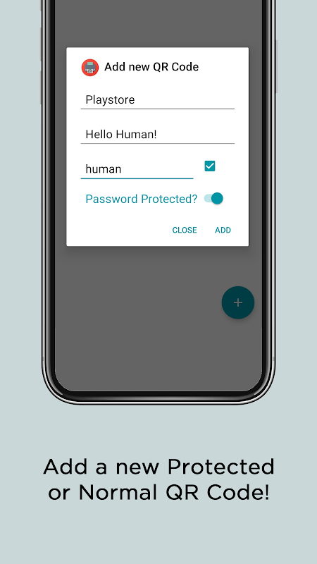 • To create a Secured/Protected QR Code:- Simply open the QR Code Pro app --> Click on the second button --> Click on the plus button (+) in the bottom right corner --> Enter a name for it (it will help you remember it in future --> Enter the data which you want to generate the QR Code of --> Touch the switch saying "Password Protected" --> Enter a password --> Click Done/ok.