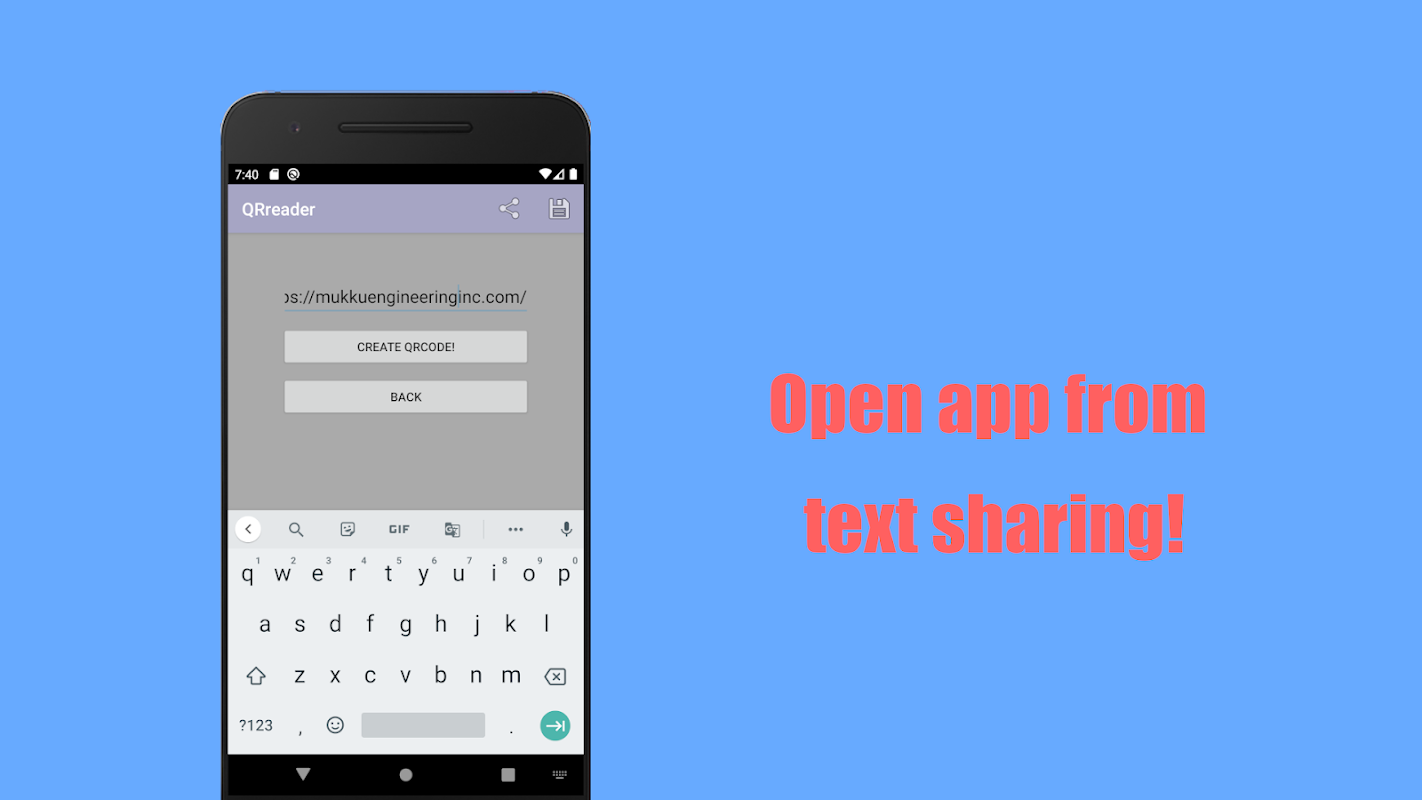 ☆您可以将创建的QR码另存为图像文件,或将其直接从应用程序共享到FB或Twitter。