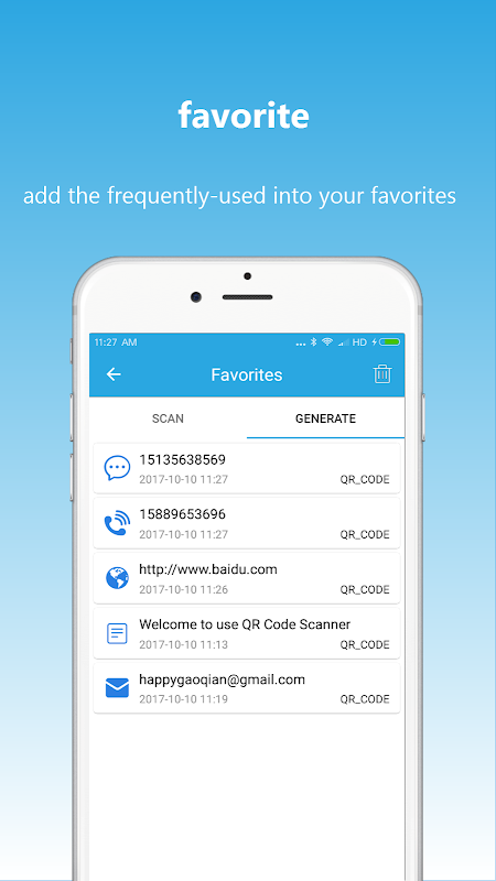 5)二维码条码扫一扫可以将您所有的二维码或条形码添加到您的收藏夹。