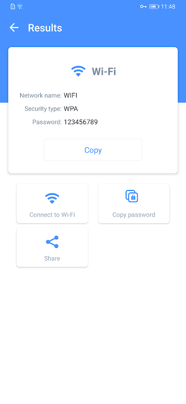After scanning, several relevant options for the results will be provided, you can search the products online, visit the websites, or even connect to Wi-Fi without entering the password...