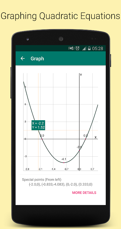 这是一个聪明的应用程序,它解决了二次方程式或公式,让您步一步的解决方案。与大多数其他应用程序,此应用与功能的既“二次公式”和“完成正方形”的方法。