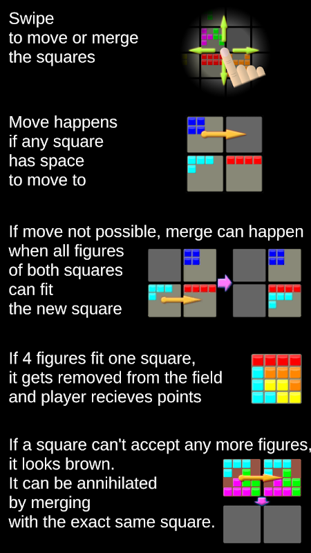 The main purpose of the game is to clean the 4x4 field by merging the figures.