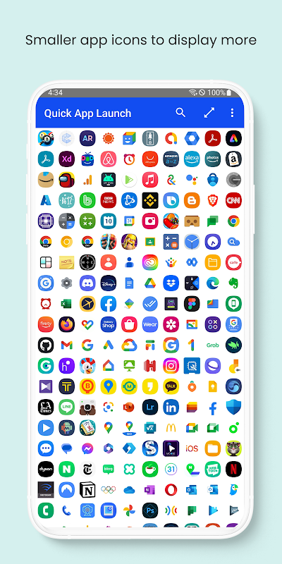 与典型的启动器应用程序不同,它显示更小的应用程序图标以在屏幕上显示更多应用程序图标,让您一眼就能快速找到并启动应用程序。您还可以轻松调整应用程序图标的大小,使它们显得更大或更小。此外,关键字搜索功能可帮助您更快地找到所需的应用程序。