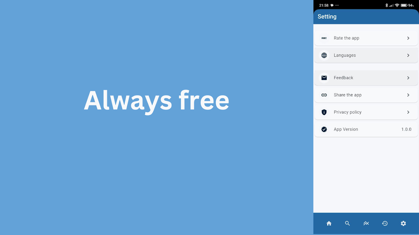 If you have any requests or encounter any problems, please contact us via “Feedback” in the settings.
