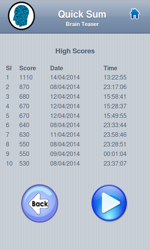 Quick Sum Brain Teaser is a simple number based brain game. The game helps you to sharpen your attention, reasoning, problem solving skills etc.